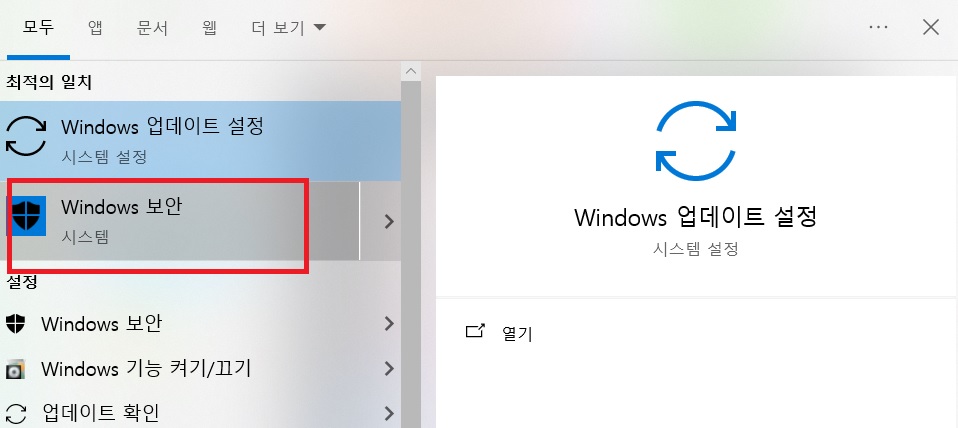 1. 윈도우 시작버튼 -검색창-Windows 보안