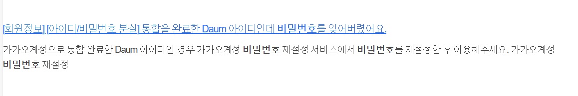 검색창에 아예 '다음 비밀번호 찾기'를 검색하면 '아이디/비밀번호 분실'이라는 메뉴가 등장합니다.
