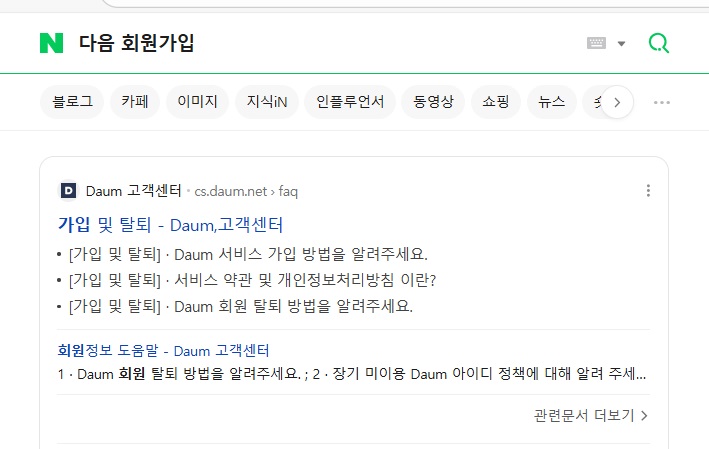 손쉬운 방법으로는 아예 검색창에 '다음 회원가입'을 통으로 검색하는 겁니다.